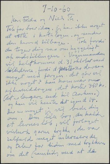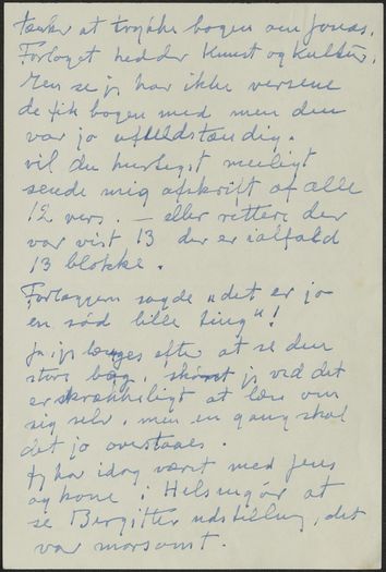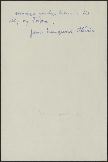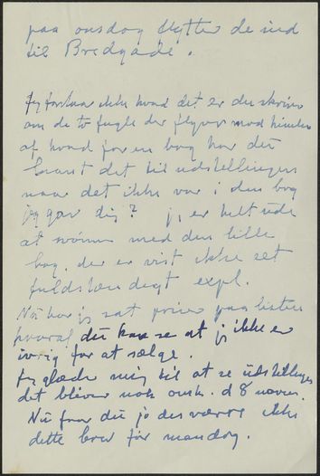 Olivia Holm-Møller meddeler Niels Th. Mortensen, at vognmanden kommer den 31. for at hente hendes værker. Derudover fortæller hun, at forlaget Kunst og Kultur gerne vil udgive nogle af hendes træsnit.