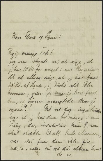 Brevet er udateret, men i et brev dateret 30.9.1903 sender Olivia Holm-Møller et regnskab til Thora og Signe Constantin-Hansen, hvor det fremgår at hun har taget 10 kr. fra Signe i slutningen af februar 1903. Det kan muligvis være de 10 kr. som omtales i nærværende brev.