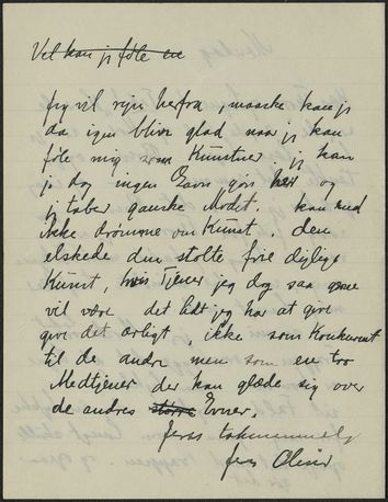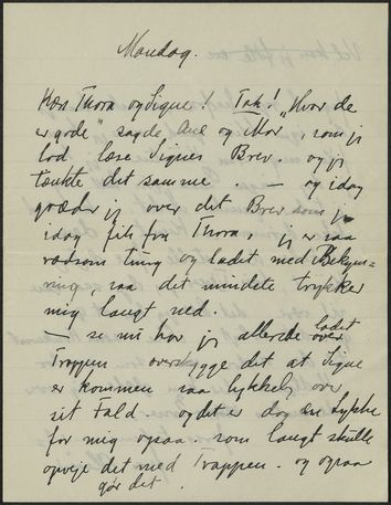 Olivia Holm-Møller takker Thora og Signe Constantin-Hansen for deres breve. Hun undskylder at trappen har overskygget at Signe er kommet sig over et fald. Derudover skriver hun, at hun drømmer om at tjene den frie kunst og ikke være en konkurrent til andre.