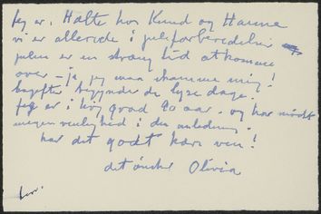 Olivia Holm-Møller sender en julehilsen og fortæller, at hun skal udstille på Louisiana.