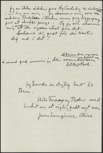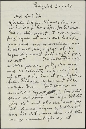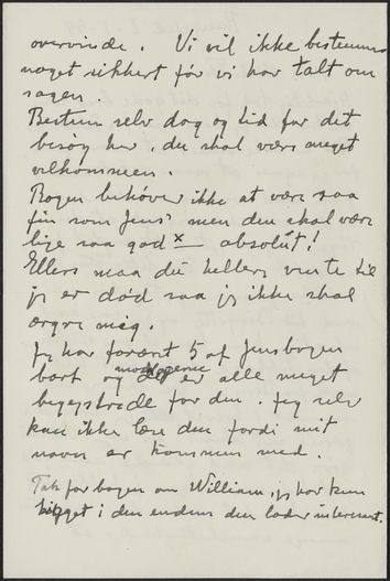 Olivia Holm-Møller er kommet hjem fra Bern og skriver til Niels Th. Mortensen i forbindelse med hans ønske om at skrive en ny biografi om hende.