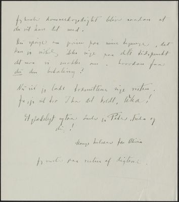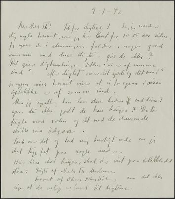 Olivia Holm-Møller skriver til Niels Th. Mortensen angående nogle træsnit, som muligvis skal illustrere en af hans digtsamlinger. Derudover skriver hun, at de må tales ved om prisen på hendes tegninger og ønsker godt nytår.