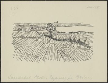 Jule- og nytårshilsen. På forsiden Olivia Holm-Møllers tegning Landskab, Mols, 1930'erne.