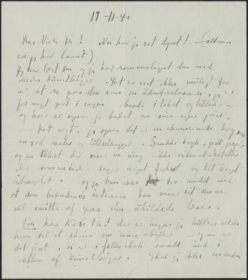 Olivia Holm-Møller takker Niels Th. Mortensen for hans biografi om hende. Derudover tilbyder hun, at lave tegninger til hans digte en anden gang.