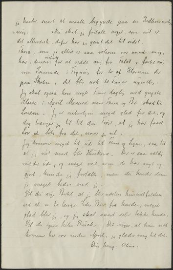 Dateret på baggrund af brevets indhold: Olivia Holm-Møller nævner Signe Constantin-Hansens fødselsdag den 17. januar. Derudover omtaler hun Emilie Mundt og Marie Luplaus tegneskole, hvor hun gik i vinteren 1900/01. Brevet er derfor formentlig skrevet i slutningen af januar 1901.